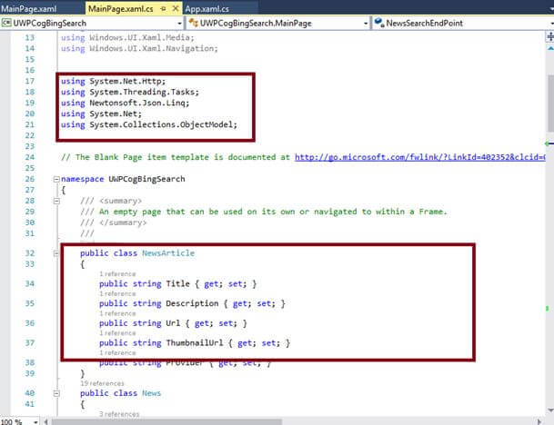 Reading this article, you can learn how to use Cognitive Service Bing News Search API in Universal Windows Apps development with Azure, XAML and Visual C#.