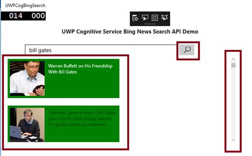 - <TextBlock x:Name="tblTitle" HorizontalAlignment="Left" Margin="163,43,0,0" TextWrapping="Wrap" Text="UWP Cognitive Service Bing News Search API Demo" VerticalAlignment="Top" Foreground="#FF2B2A2A" FontWeight="Bold" />