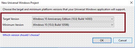 After choosing the Target and minimum platform version for your Windows, Universal Application will support the Project creates App.xaml and MainPage.xaml.