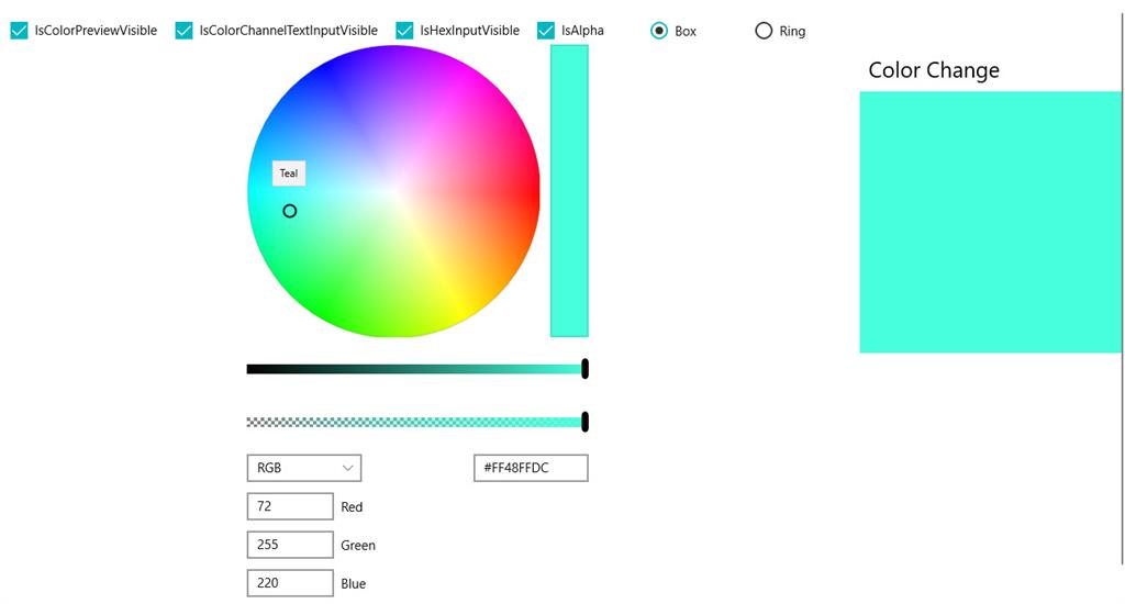 - <ColorPicker Name="CtrlPicker" Grid.Row="1" Grid.Column="0" ColorSpectrumShape="Ring"