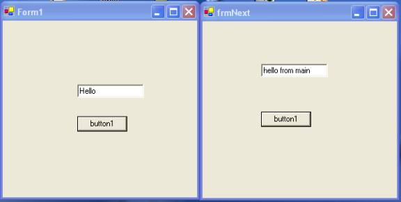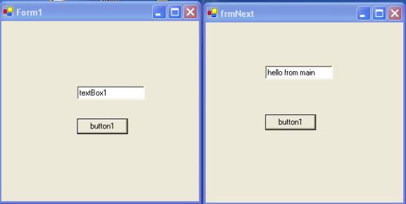 In the second form (called frmNext.cs) I made a public function to write something in the textBox1: