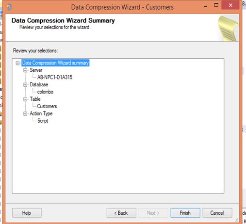 Let's Look at the GUI. A popup will open. Click On next. Click on Row level and Click On Calculate Button it will estimate the Size in MB. Just Click Next. Click Next and See the details. Click On Finish. A Script will get generated; just run that script. Same with Page level. Conclusion This was Compression on SQL Server . Kindly let me know your queries pertaining to this article.