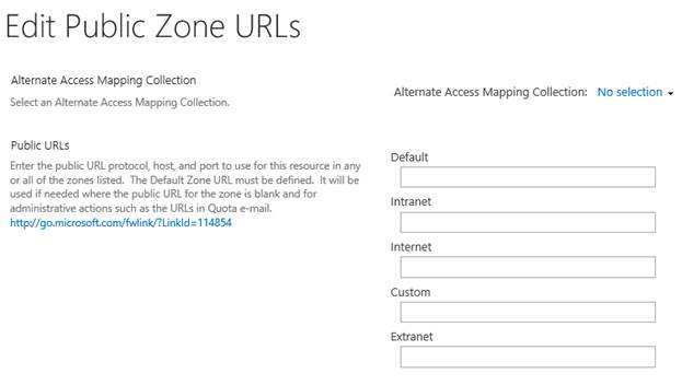 Provide a link as default, Intranet, Internet, Custom, or Extranet and map it as a internal URL to the web application.