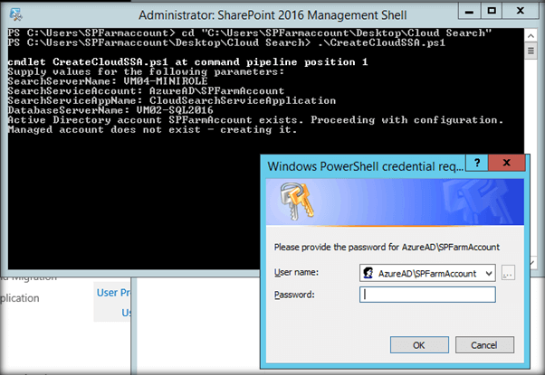 In case the Search Service Account is not added as a managed account, it will be automatically added as a managed account by the script. If prompted, add the credentials of the search Service account.