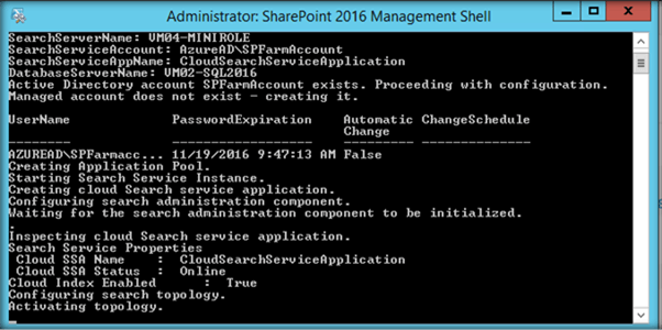 Once the Cloud Search Service Application is created, the next major step is to activate the topology, which is a time consuming step.