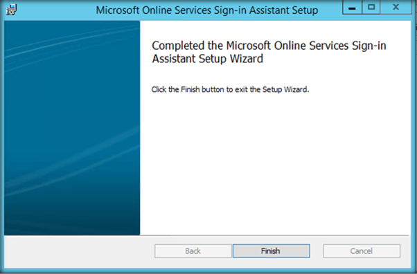 This would complete the setup of Microsoft Online Services Sign-in Assistant.