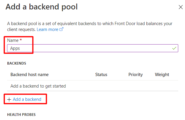 Enter a globally unique hostname, and under BACKENDS, select + Add a backend.