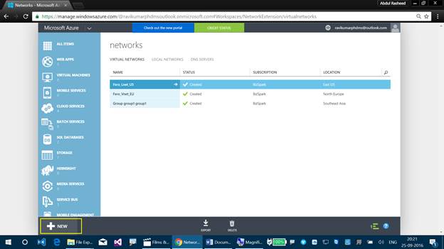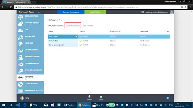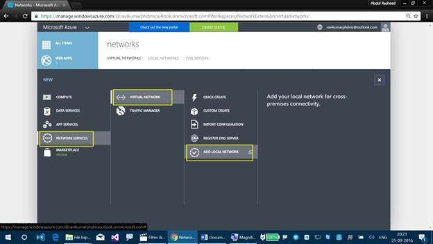 Step 11 - Click on New - Network Services - Virtual Network - Add Local Network.