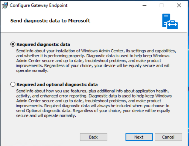 In the Send diagnostic data to Microsoft option Select Required diagnostic data and click Next.