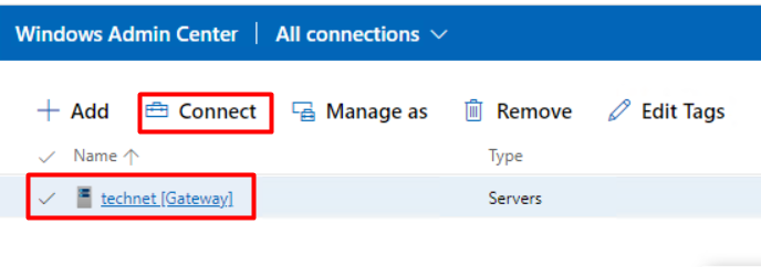 In the Windows Admin Center, we can manage our server and configure Azure Backup and Azure File Sync services.