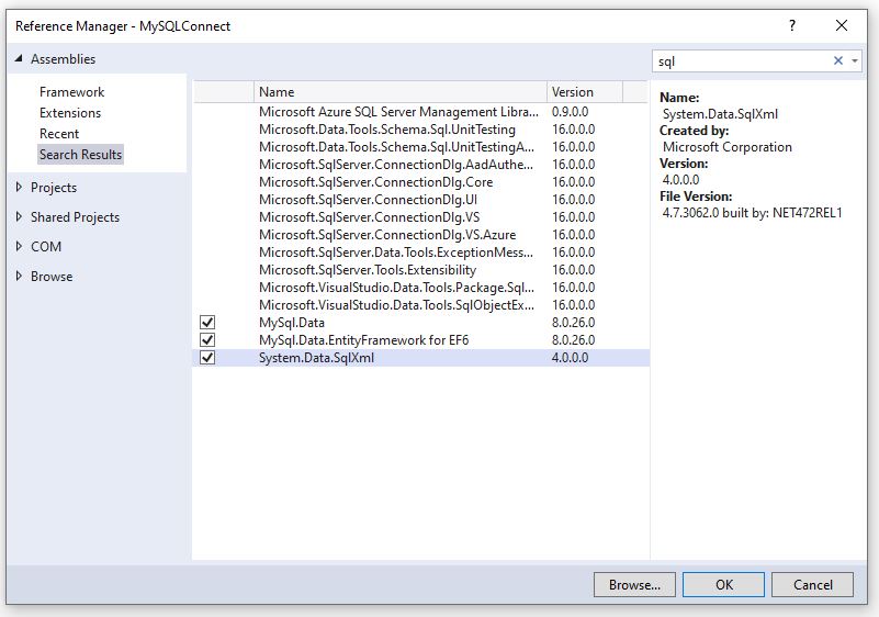Next, we need to install MySQL Connectors and MySQL for Visual Studio. Visit the following sites to obtain the download file for the respective installations, ADO.NET Driver for MySQL (Connector/NET) and MySQL Installer for Visual Studio.