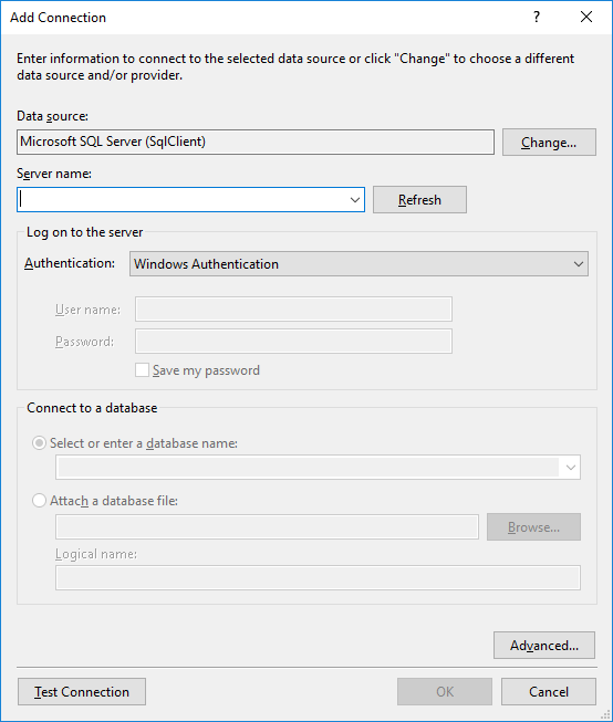 Select Authentication. (Again, since it's local, I’ve selected Windows Authentication.). Selecting SQL Server Authentication, you can enter username and password.