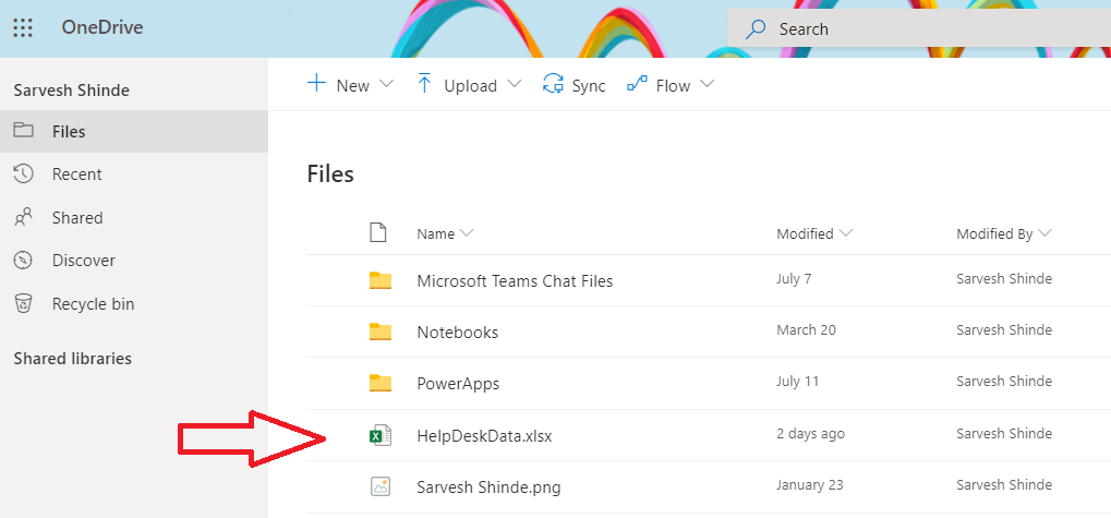 So first, let’s copy the URL of the Excel file from OneDrive. Login to OneDrive >> Navigate to your folder >> Select your Excel file.