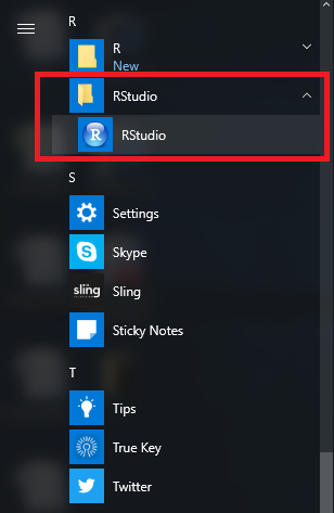The above steps will give you the proof that there are inbuilt tables with some names and lots of data to be analyzed. Now we again get out of command typing mode and enter into GUI selection mode. It's time to get inside the real software that is R. This is available from Start Menu select RStudio.