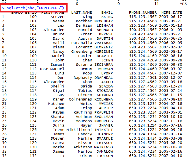 To list out the data inside the EMPLOYEES table type the below-given command.