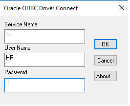 The connection window pops up and asks the user for the password field. Here I have given the password as HR same as username so that I could easily remember. After giving the password click OK.