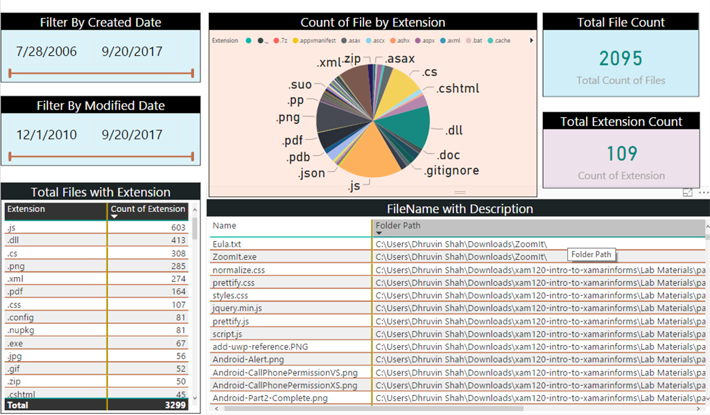 I want to prepare a report for all the available files in one of the specific folders from my local system. I also want to filter the files based on creation and modification dates and their extension.