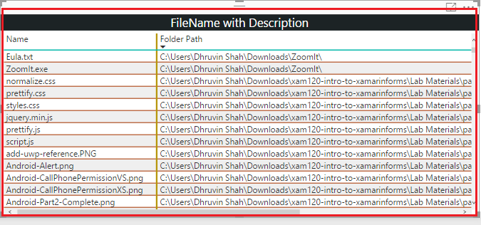 I want to add a file name with description. So, I will use table visual again.