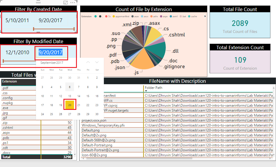 Let’s filter data based on created date and modified date. Drag the slicer or select date from date picker.