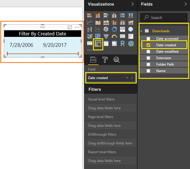 Secondly, let’s add a slicer visual to filter the data based on the date modified.
