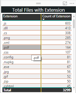 When I hover on any visual, it will show the file extension with file count.