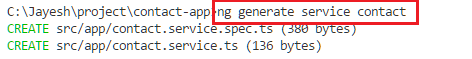 To create a consumed contact API that we have created Part 1; we are generating Angular contact services class in app folder using this command:
