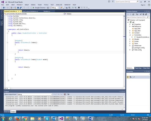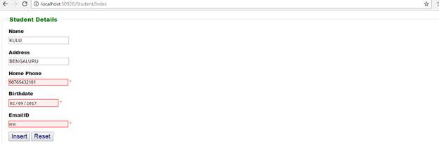 Now, we need to check for the valid data and the satisfied condition in Student.cs file. Hence, no validation message appears.