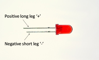 Now, connect Arduino with the computer, fix the LED to the PIN NO-13(Positive) and to Gnd(Negative). The Negative and Positive of the LED is shown below: