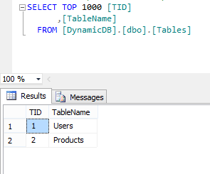 The “Tables” will be used to hold the table names like Users, Products….etc.