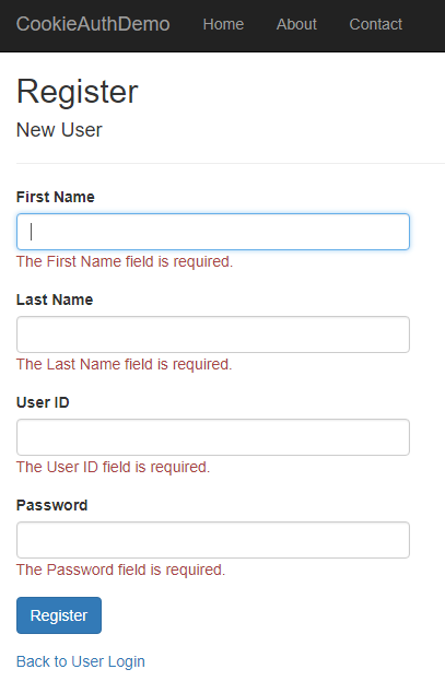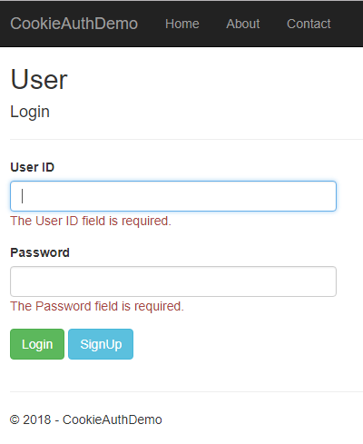 User.cs and put the following code in it. Since we are adding the required validators to the fields of User class, so we need to use System.ComponentModel.DataAnnotations at the top. Also, to mask the values typed in Password field, we have used [DataType(DataType.Password)] property.