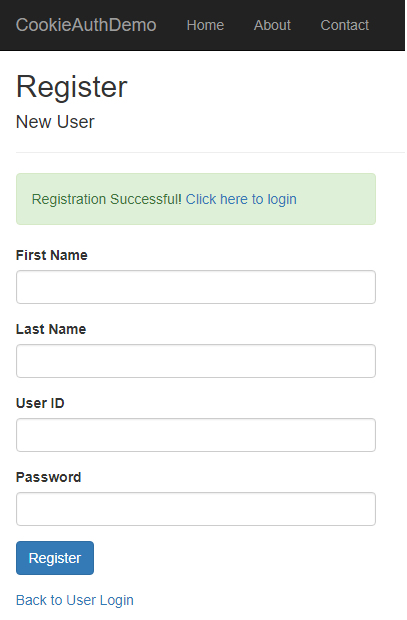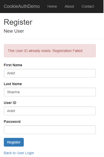 We are allowing only the unique User id for our application. Hence, if a user tries to register with an already existing User ID, this procedure will return ‘Failed’.