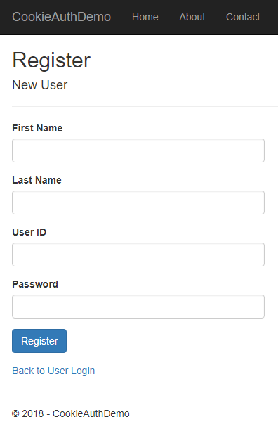 This view will be used to register a new user for our application.