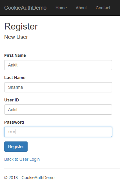 Open RegisterUser.cshtml and put following code into it.
