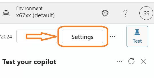 Once you create the new copilot and when the bot is provisioned, you will have three options for the bot security management. To configure the same you can click on the Settings on the top right.