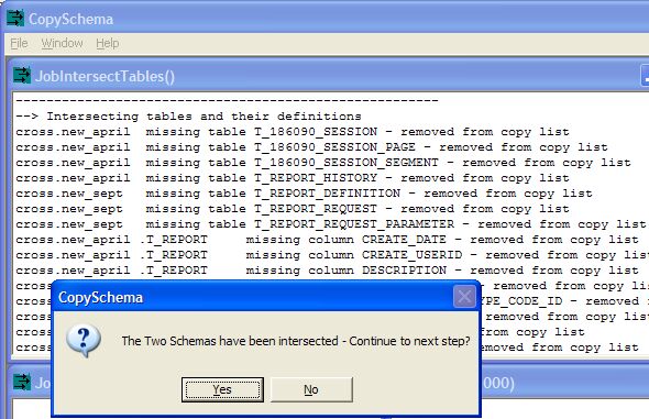 Another possible use of CopySchema is to start the process of two schemas to see a list of the differences between the two. As long as the user clicks 'No' and doesn't continue after the schema definitions are intersected and the differences listed, nothing will have been modified in any schema.