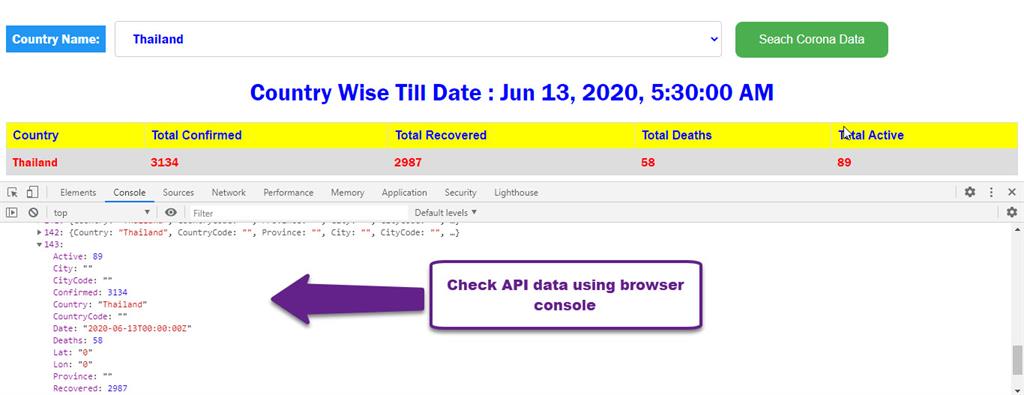 Check API data using browser console.