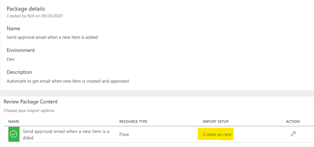 Please note that here power automate is imported and it says “Create as new” under “Import Setup” field. This is because when I exported this power automate, I used this option as this is the first time I created this automate in this destination environment. In case you already have automate in the destination environment, then export of automate should have an option as “Update”. You can refer that export article by clicking on this