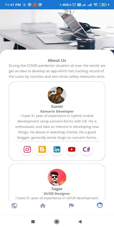 - private string about= "During the COVID pandemic situation all over the world, we get an idea to develop an app which has tracking record of the cases by counties and also show safety measures aims.";