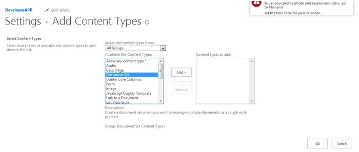Go to the library settings and select this Advance settings option to allow the  content type,