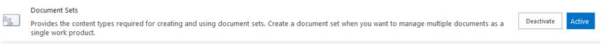 This topic explains how to enable the Document Sets feature for an office 365  SharePoint online site collection, and then how to configure the Document Set  content type.Document Set is a hybrid between a folder and a list item. It  allows you group documents together as with a folder and at the same time,  associate metadata to it as you would with an item.