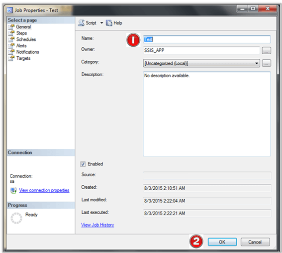 On the general page, you should give a name for Scheduling the job and then click “OK”.