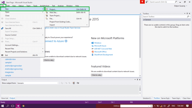 Step 1 - Click File--> New--> Project. Or, press "Ctrl+Shift+N" in Visual Studio.