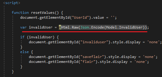 - var invalidUser = @Html.Raw(Json.Encode(Model.InvalidUser));