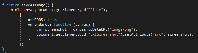 - We will also add a provision to save this flair as image using third party JavaScript library <b>html2canvas.</b></p>