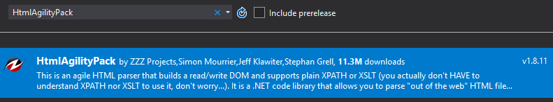 Before adding these codes, we must install the HtmlAgilityPack NuGet package to our project.