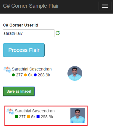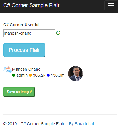 In this post, we will see how to create a sample C# Corner User Flair in ASP.NET MVC application using HtmlAgilityPack. We will also add a provision to save this flair as an image using a third-party JavaScript library, html2canvas.