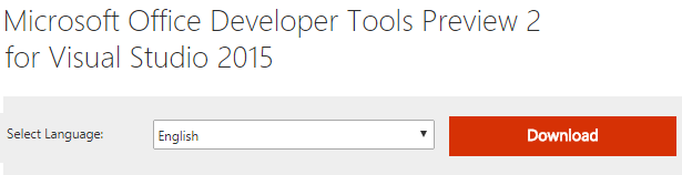 Microsoft Office Developer Tools Preview 2 for Visual Studio 2015 is not installed.