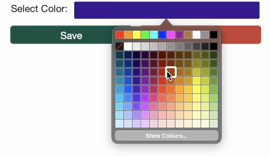 - @bind="selectedColor": This attribute establishes a two-way data binding to the "selectedColor" property. In simple terms, any changes made to the color picker will automatically update the "selected color" property and vice versa.
