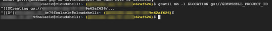 Type gsutil mb -l $LOCATION gs://$DEVSHELL_PROJECT_ID command in order to create a bucket with the name of project id (unique). You can also provide a unique name to your bucket manually as well. Here in the command mb stands for the make bucket. gs://<Your_Bucket_Name> in which gs:// refers to the resource in the Cloud Storage.