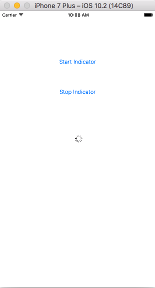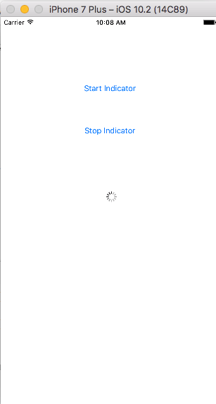 After few seconds, the app will start running on your iPhone simulator.You will see your app working successfully. You can click Start Indicator button and Activity Indicator will be started successfully.